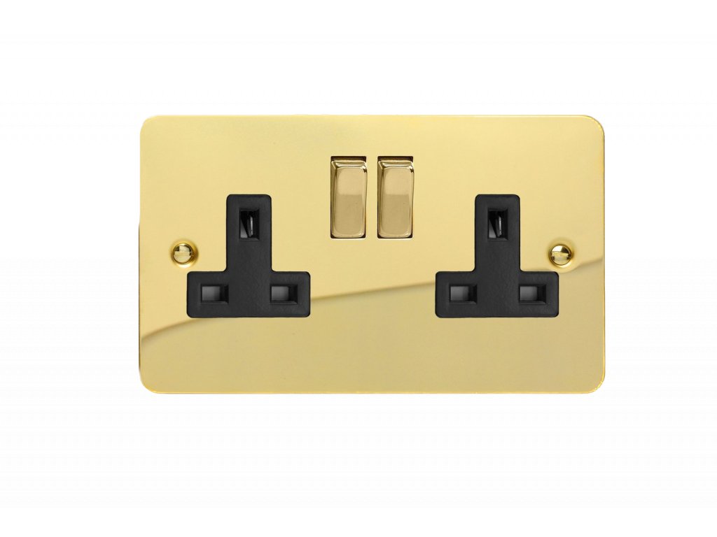 Síová zásuvka MAINS SOCKET - 2-modulový 13A 2-pólový britská zásuvka ULTRAPLOCHÉ - letìná mosaz / èerná