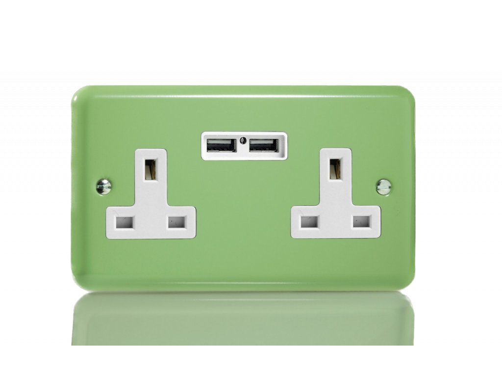 Síová zásuvka MAINS SOCKET - 2-modulový 13A britská zásuvka KLASICKÉ - berylovì zelená / bílá
