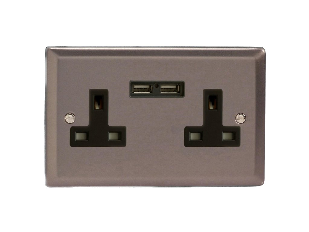 Síová zásuvka MAINS SOCKET - 2-modulový 13A britská zásuvka KLASICKÉ - cínová / èerný