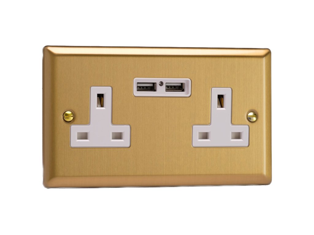 Síová zásuvka MAINS SOCKET - 2-modulový 13A britská zásuvka KLASICKÉ - kartáèovaná mosaz / bílá