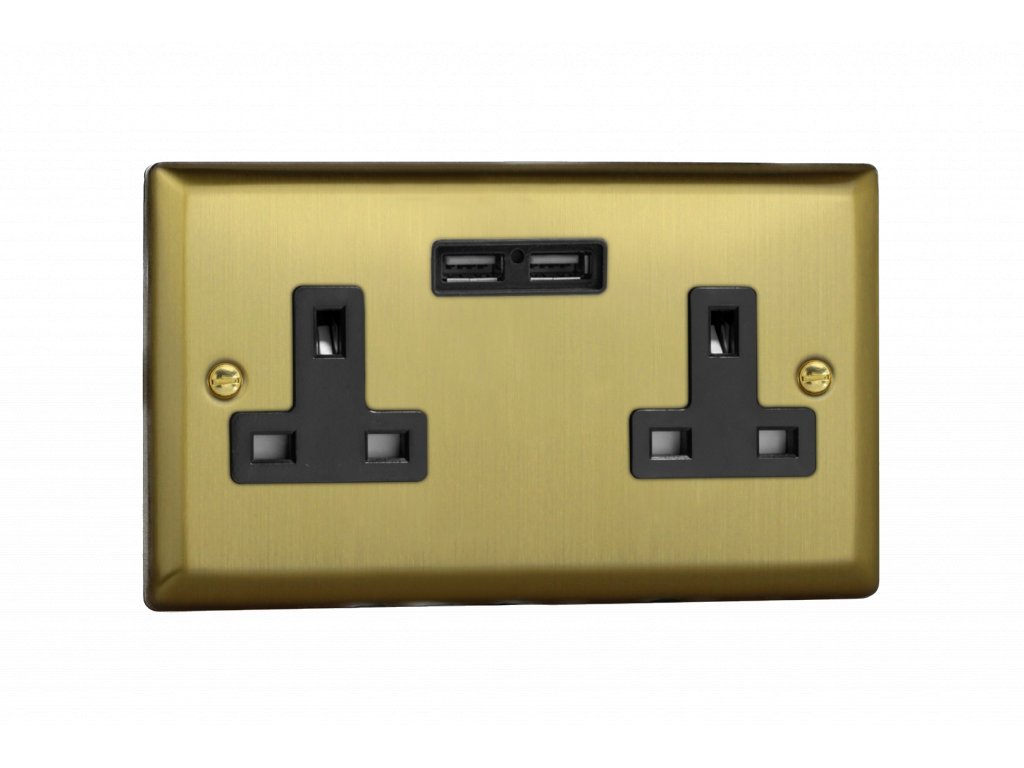 Síová zásuvka MAINS SOCKET - 2-modulový 13A britská zásuvka KLASICKÉ - kartáèovaná mosaz / èerný