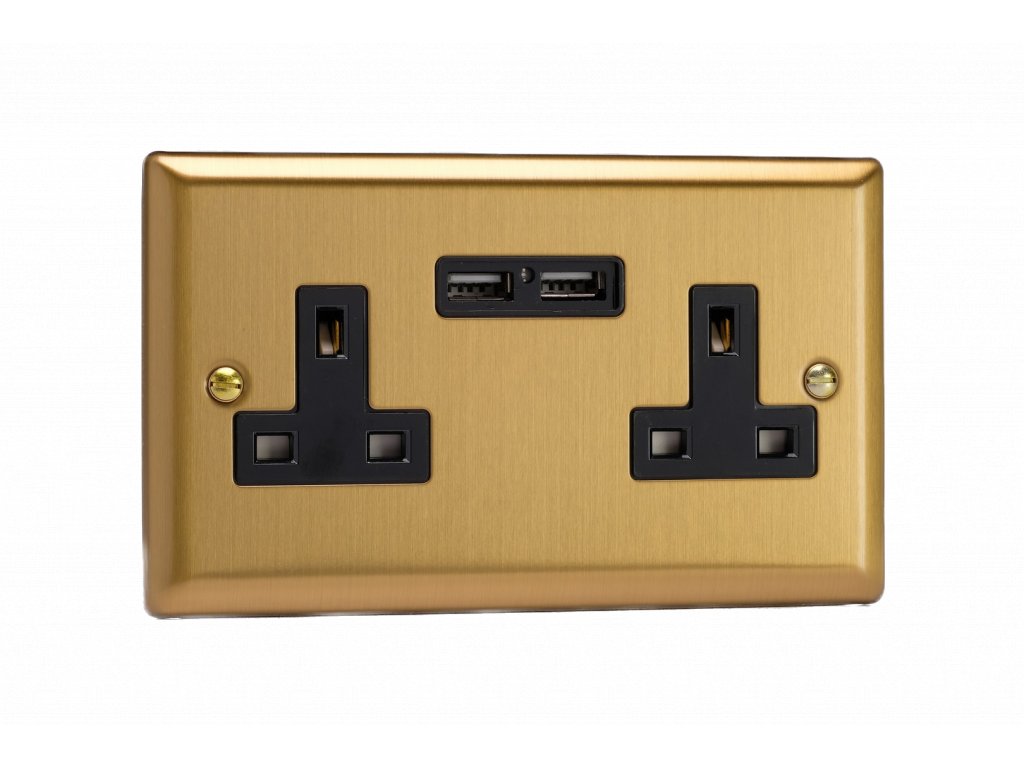 Síová zásuvka MAINS SOCKET - 2-modulový 13A britská zásuvka KLASICKÉ - kartáèovaná mosaz / èerný