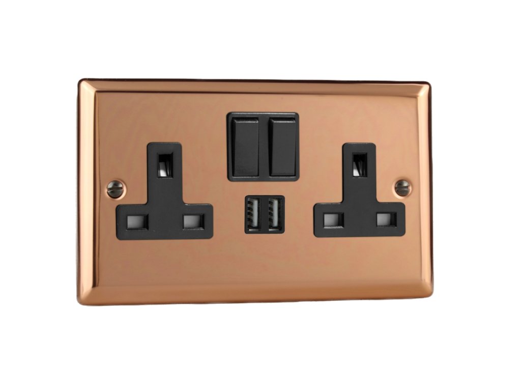 Síová zásuvka MAINS SOCKET - 2-modulový 13A britská zásuvka KLASICKÉ - letìná mìï / èerný