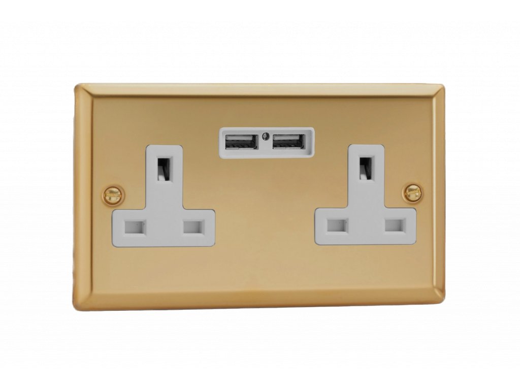 Síová zásuvka MAINS SOCKET - 2-modulový 13A britská zásuvka KLASICKÉ - letìná mosaz / bílá
