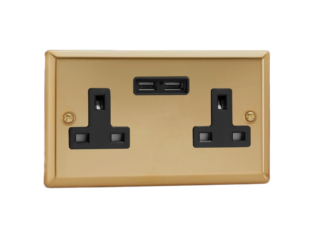 Síová zásuvka MAINS SOCKET - 2-modulový 13A britská zásuvka KLASICKÉ - letìná mosaz / èerný