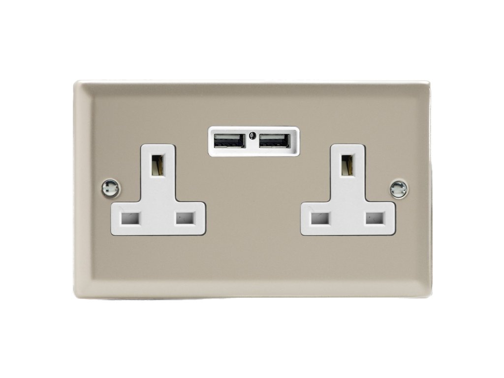 Síová zásuvka MAINS SOCKET - 2-modulový 13A britská zásuvka KLASICKÉ - satén / bílá
