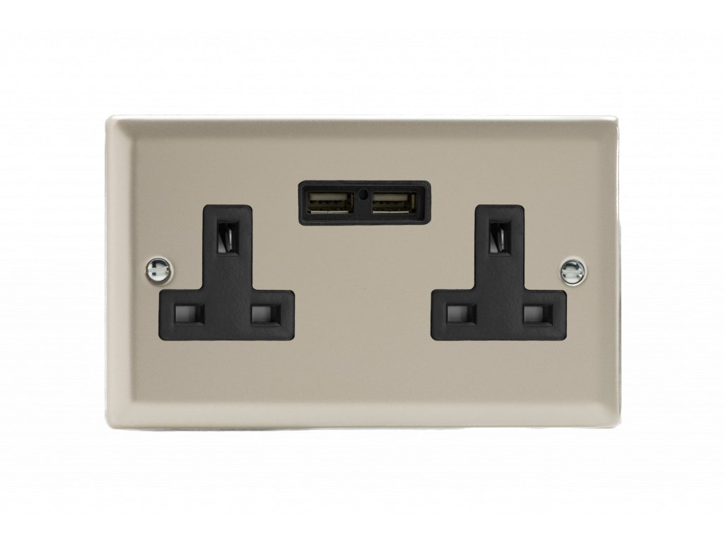 Síová zásuvka MAINS SOCKET - 2-modulový 13A britská zásuvka KLASICKÉ - satén / èerný