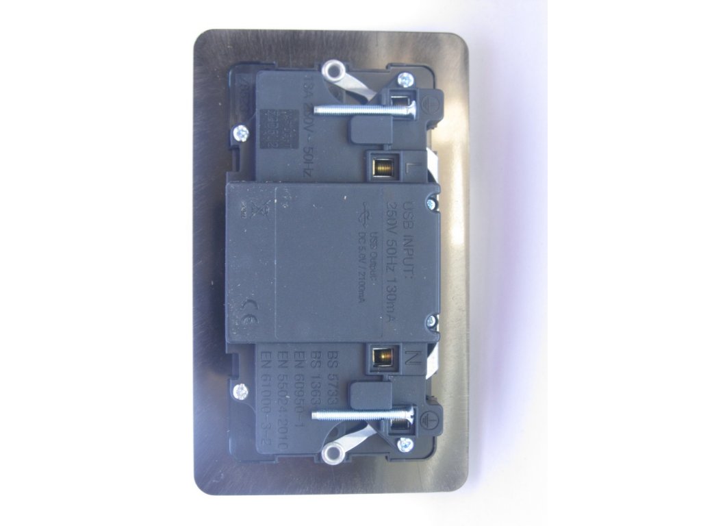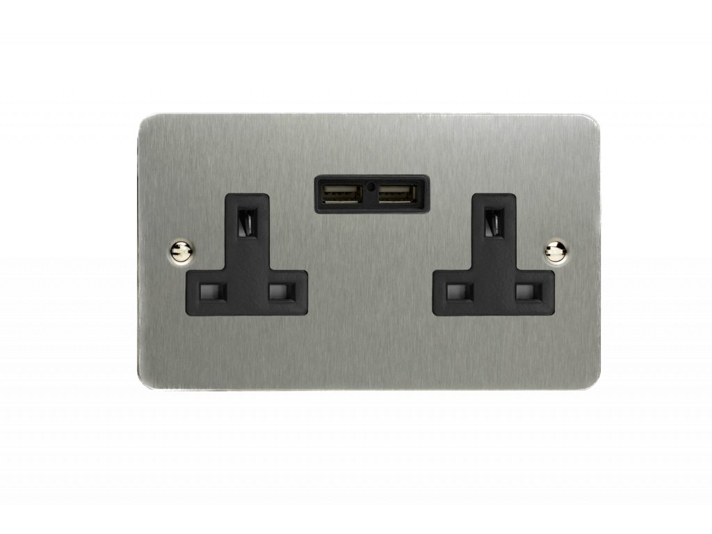 Síová zásuvka MAINS SOCKET - 2-modulový 13A britská zásuvka ULTRAPLOCHÉ - kartáèovaná ocel / èerný