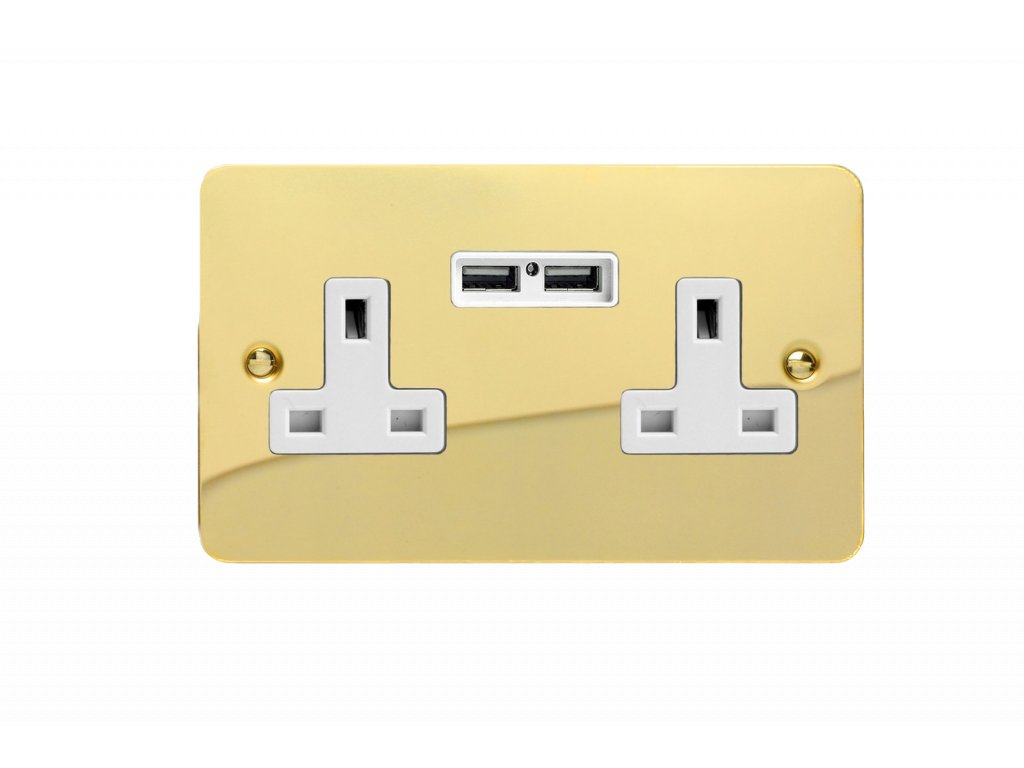 Síová zásuvka MAINS SOCKET - 2-modulový 13A britská zásuvka ULTRAPLOCHÉ - letìná mosaz / bílá