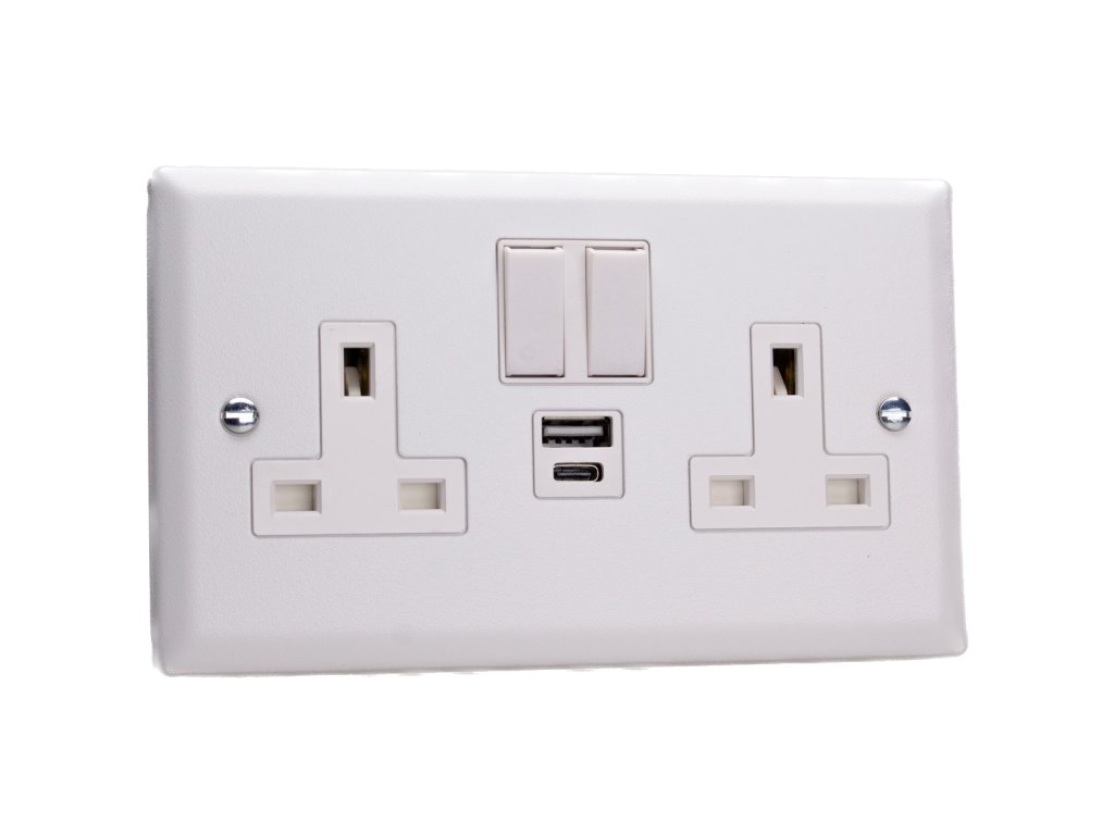 Síová zásuvka MAINS SOCKET - 2-modulový 20 W USB 13A 1-pólový britská zásuvka KLASICKÉ - køída bílá / bílá