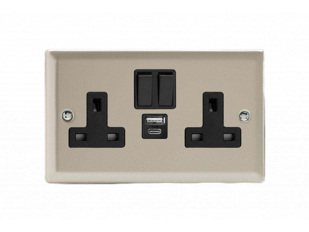 Síová zásuvka MAINS SOCKET - 2-modulový 20 W USB 13A 1-pólový britská zásuvka KLASICKÉ - satén / èerný