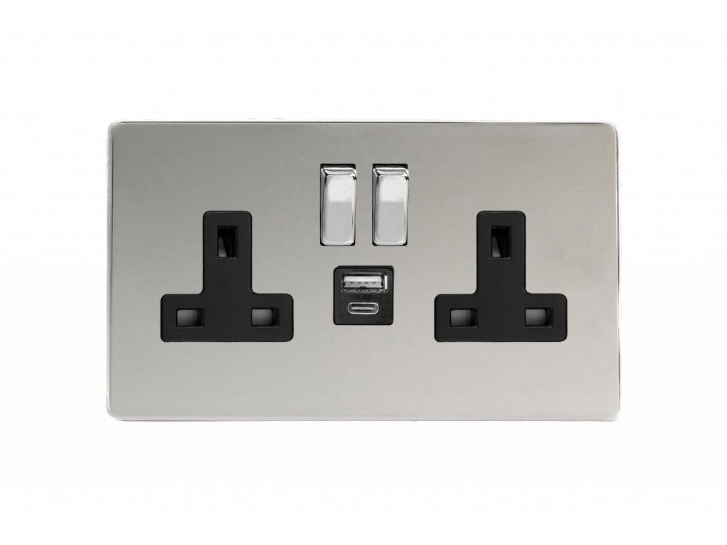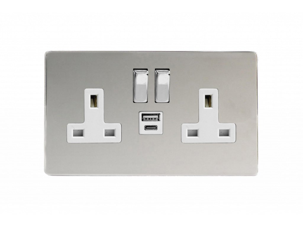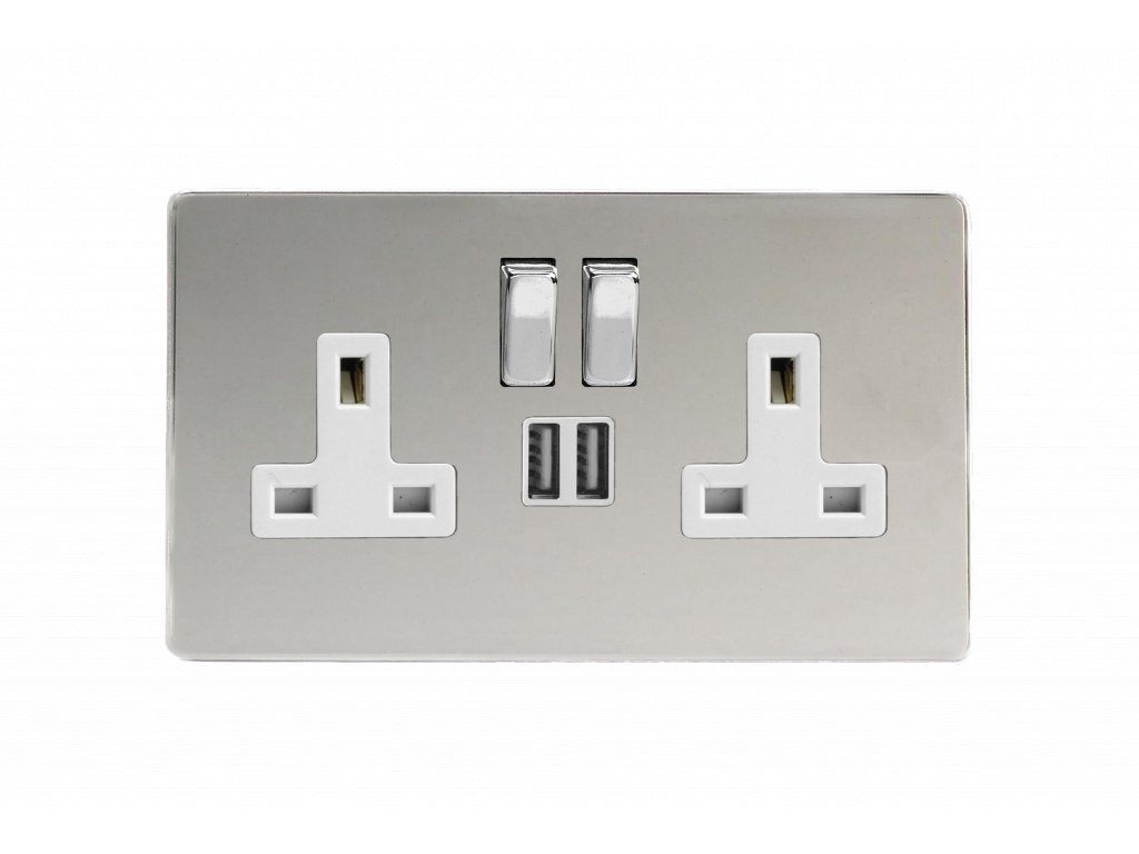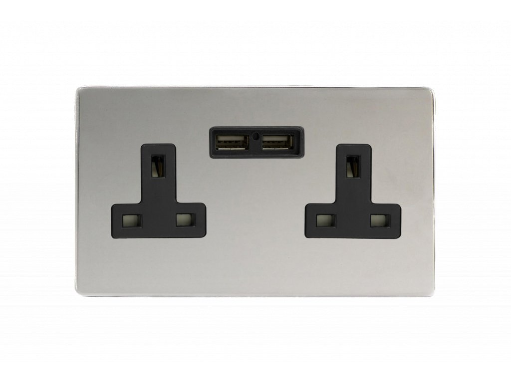 Síová zásuvka MAINS SOCKET - Bezroubkový - 2-modulový - letìný chrom