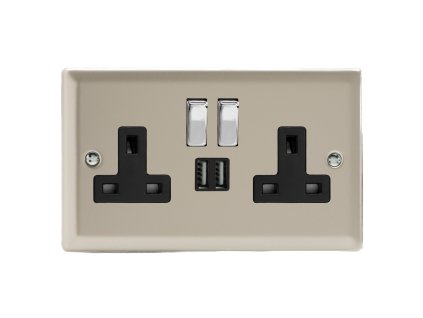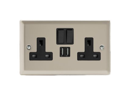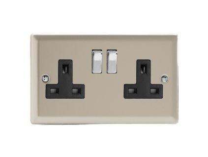 Síová zásuvka MAINS SOCKET - 2-modulový 13A 2-pólový britská zásuvka KLASICKÉ - satén / èerná