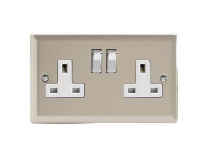 Síová zásuvka MAINS SOCKET - 2-modulový 13A 1-pólový britská zásuvka KLASICKÉ - satén / bílá