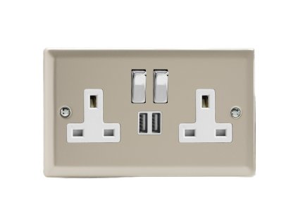 Síová zásuvka MAINS SOCKET - 2-modulový 13A 2-pólový britská zásuvka KLASICKÉ - satén / bílá