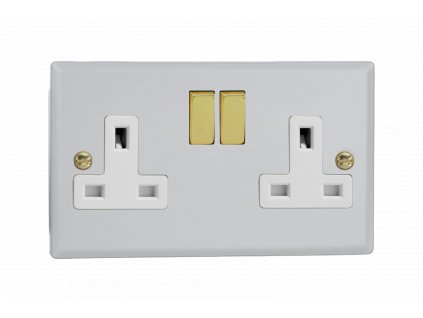 Síová zásuvka MAINS SOCKET - 2-modulový 13A britská zásuvka KLASICKÉ - matnì bílá / letìná mosaz