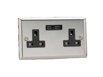 Síová zásuvka MAINS SOCKET - 2-modulový 13A britská zásuvka KLASICKÉ - matnì chromová / èerný