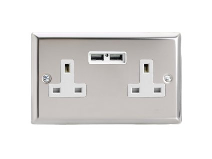 Síová zásuvka MAINS SOCKET - 2-modulový 13A britská zásuvka KLASICKÉ - kartáèovaná ocel / bílá