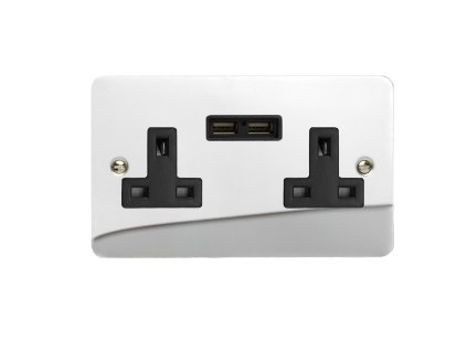 Síová zásuvka MAINS SOCKET - 2-modulový 13A britská zásuvka ULTRAPLOCHÉ - letìný chrom / èerný
