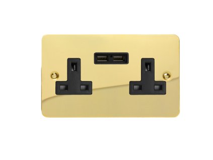 Síová zásuvka MAINS SOCKET - 2-modulový 13A britská zásuvka ULTRAPLOCHÉ - letìná mosaz / èerný