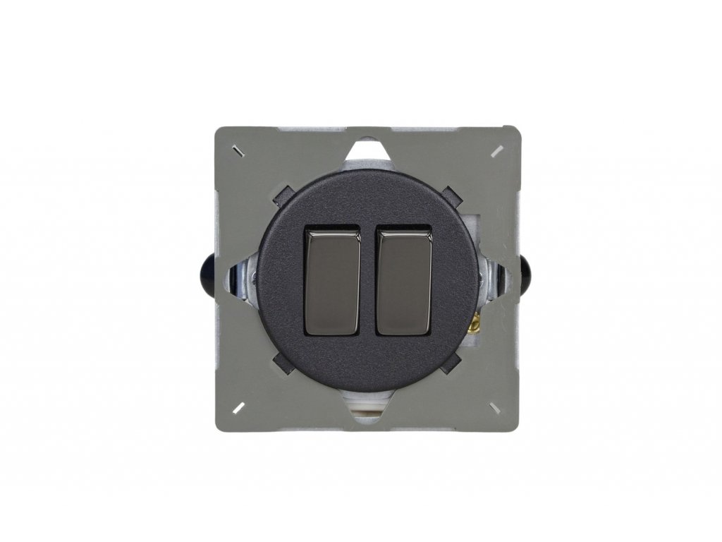 Kolébkový vypínač ROCKER - 2-modulový schodišťový (č.6); jednosměrný (č.1) 10A 1-pólový BEZŠROUBKOVÉ - matně černá / černé (lesklé) iridium