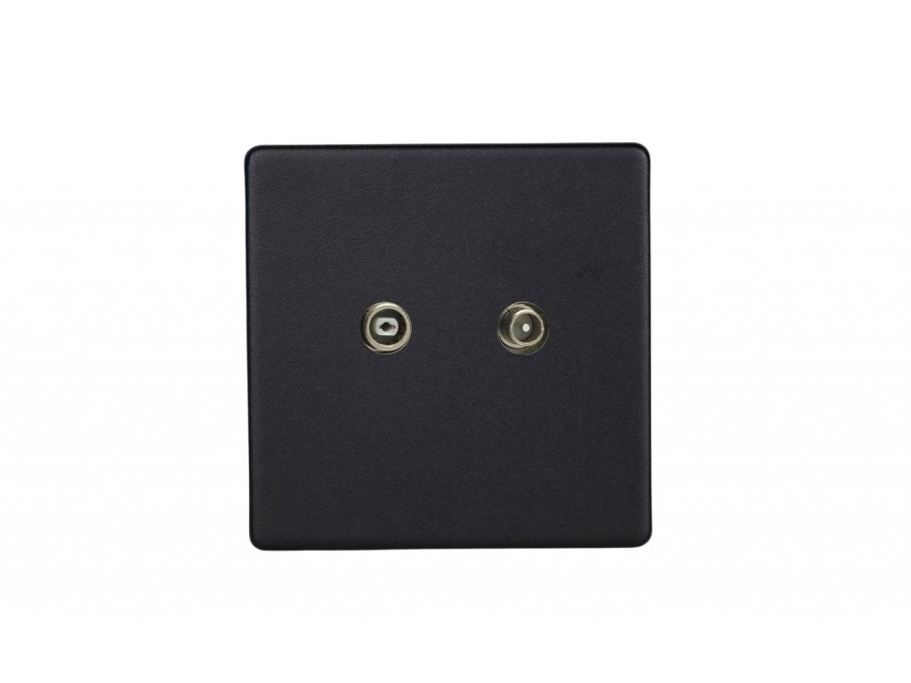 Mutimediální zásuvka MEDIA SOCKET - 2-modulový TV/Radio BEZŠROUBKOVÉ - matně černá