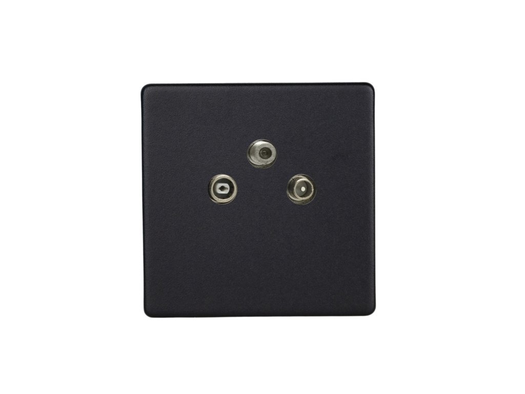 Mutimediální zásuvka MEDIA SOCKET - 3-modulový TV/Radio BEZŠROUBKOVÉ - matně černá