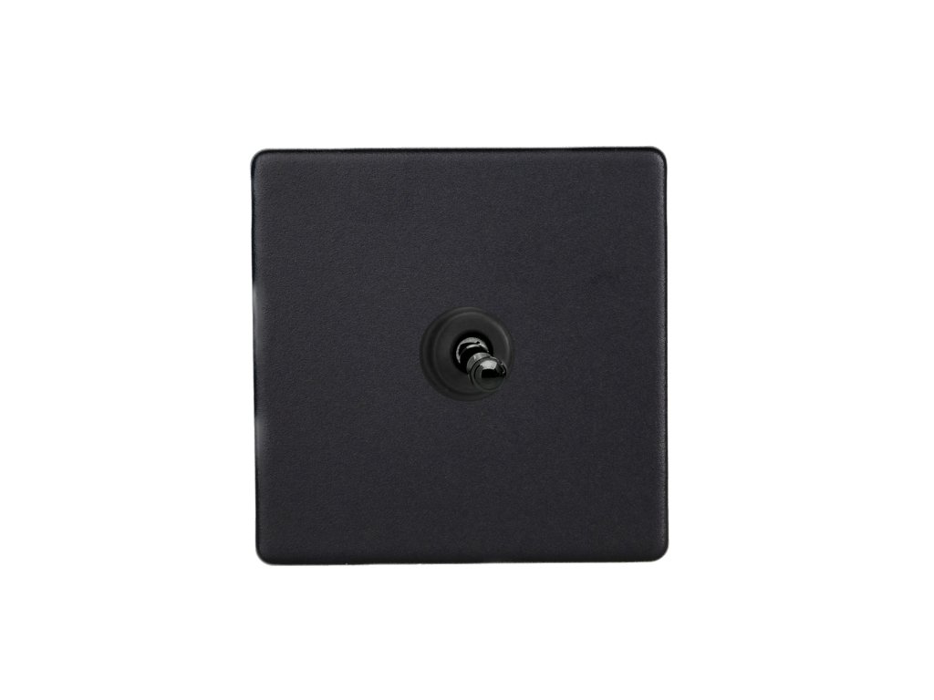 Páčkový vypínač TOGGLE - 1-modulový křížový (č.7) 10A 1-pólový BEZŠROUBKOVÉ - matně černá / černé (lesklé) iridium