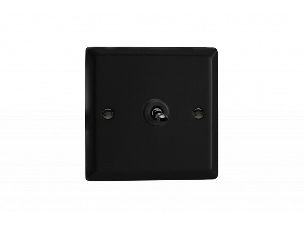 Páčkový vypínač TOGGLE - 1-modulový schodišťový (č.6); jednosměrný (č.1) 10A 1-pólový KLASICKÉ - matně černá / černé (lesklé) iridium