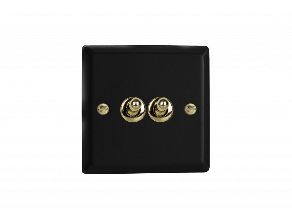 Páčkový vypínač TOGGLE - 2-modulový křížový (č.7) 10A 1-pólový KLASICKÉ - matně černá / mosazná páčka