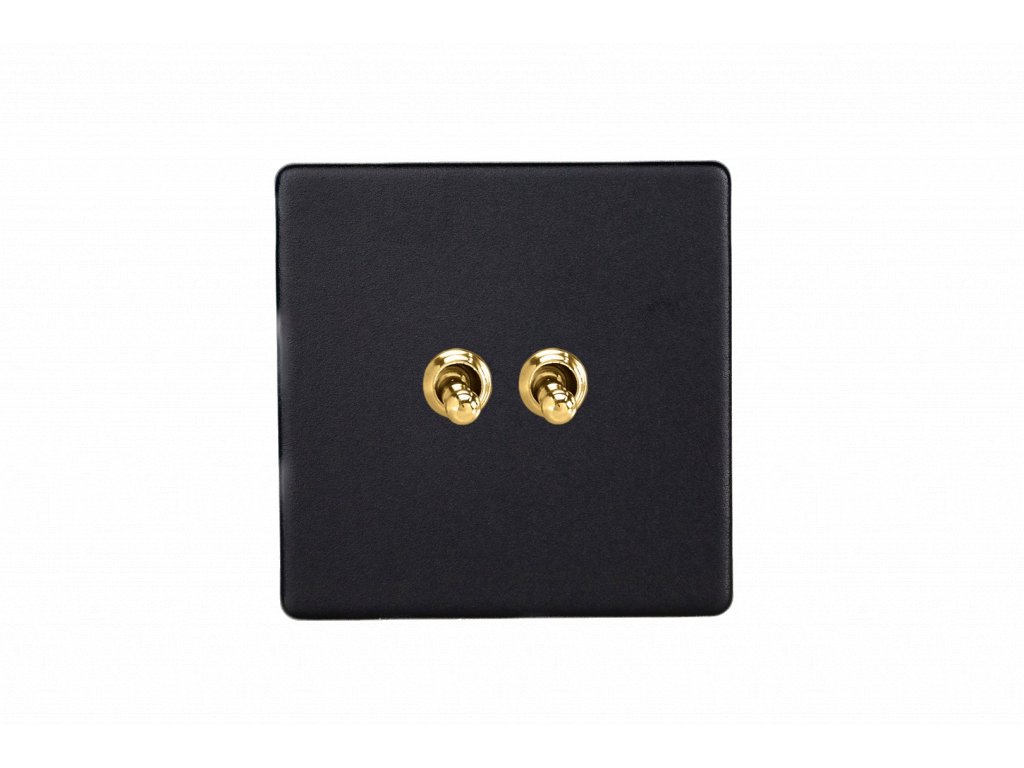 Páèkový vypínaè TOGGLE - 2-modulový schodiový (è.6); jednosmìrný (è.1) 10A 1-pólový BEZROUBKOVÉ - matnì èerná / mosazné páèky