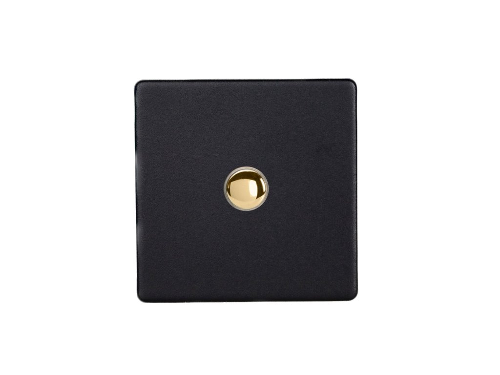 Tlačítkový vypínač IMPULSE - 1-modulový jednosměrný (č.1) 6A 1-pólový momentový BEZŠROUBKOVÉ - matně černá / mosazné tlačítko