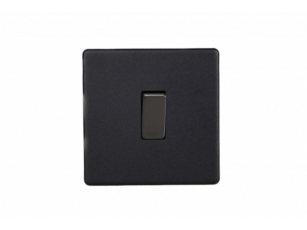Kolébkový vypínač ROCKER - 1-modulový křížový (č.7) 10A 1-pólový BEZŠROUBKOVÉ - matně černá / černé (lesklé) iridium