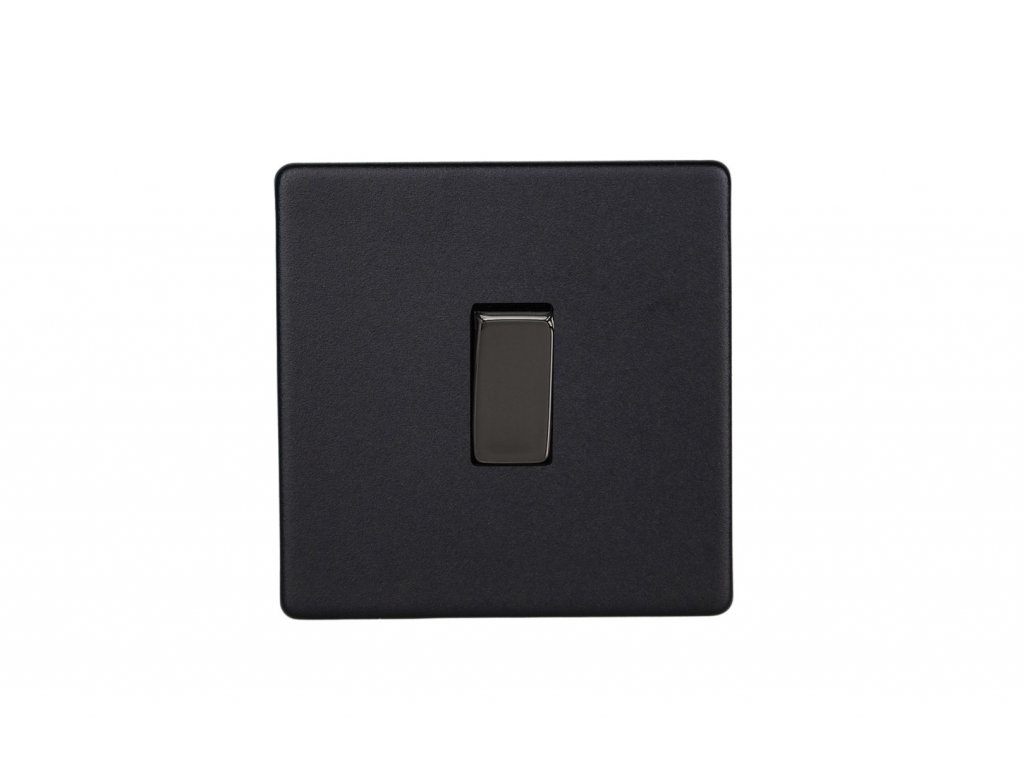 Kolébkový vypínač ROCKER - 1-modulový schodišťový (č.6); jednosměrný (č.1) 10A 1-pólový BEZŠROUBKOVÉ - matně černá / černé (lesklé) iridium