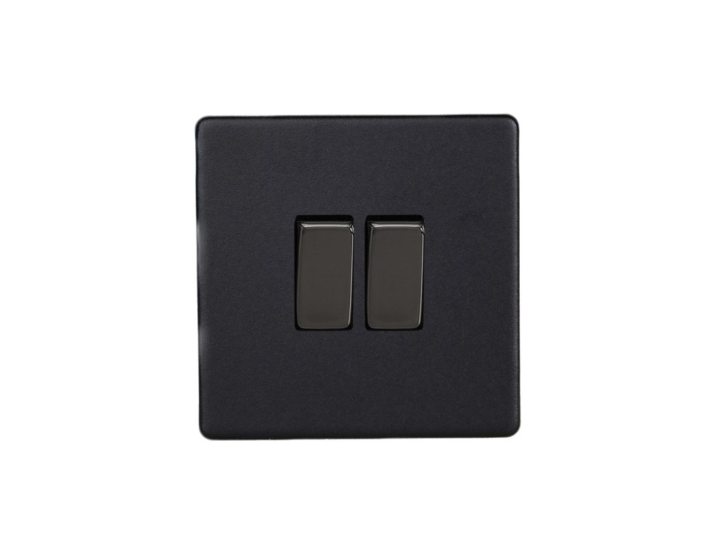 Kolébkový vypínač ROCKER - 2-modulový schodišťový (č.6); jednosměrný (č.1) 10A 1-pólový BEZŠROUBKOVÉ - matně černá / černé (lesklé) iridium