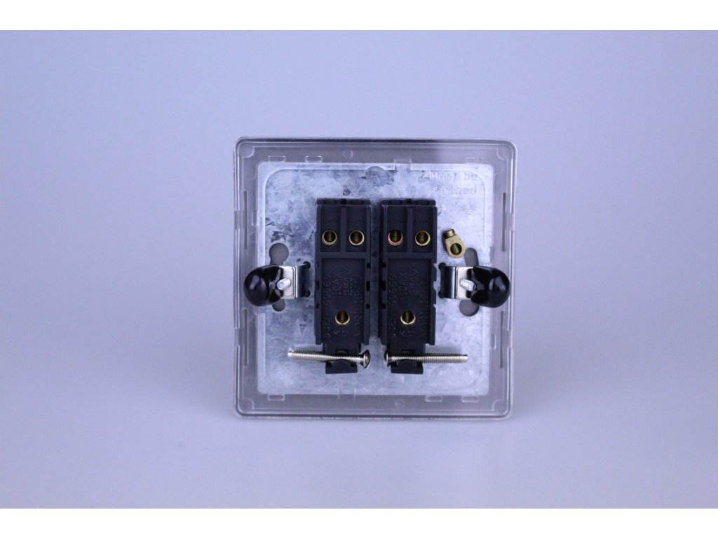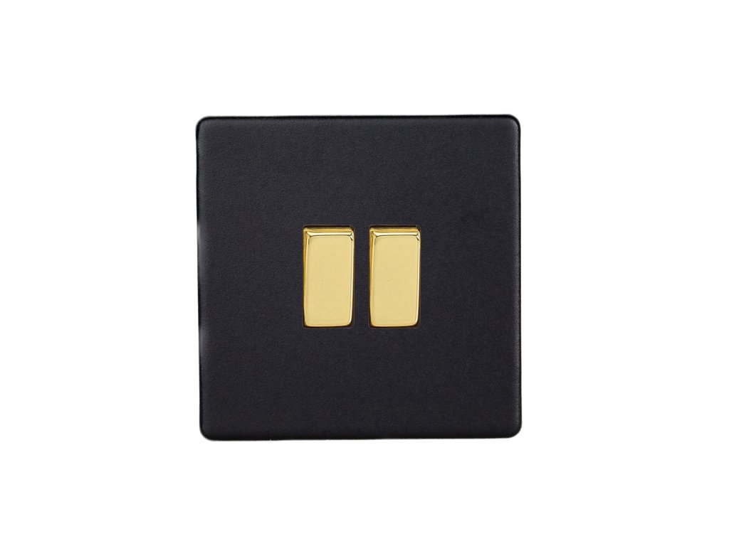 Kolébkový vypínač ROCKER - 2-modulový schodišťový (č.6); jednosměrný (č.1) 10A 1-pólový BEZŠROUBKOVÉ - matně černá / mosazné kolébky