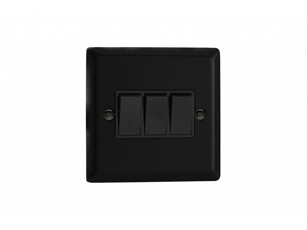 Kolébkový vypínač ROCKER - 3-modulový schodišťový (č.6); jednosměrný (č.1) 10A 1-pólový KLASICKÉ - matně černá / černé kolébky