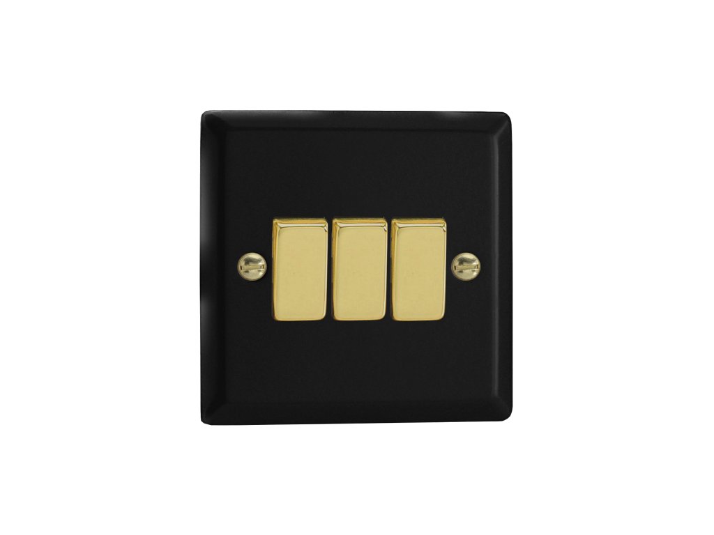 Kolébkový vypínaè ROCKER - 3-modulový schodiový (è.6); jednosmìrný (è.1) 10A 1-pólový KLASICKÉ - matnì èerná / letìná mosaz
