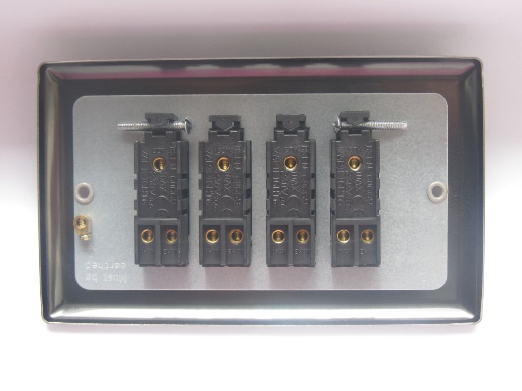 Kolébkový vypínač ROCKER - 4-modulový schodišťový (č.6); jednosměrný (č.1) 10A 1-pólový KLASICKÉ - matně černá / černé kolébky