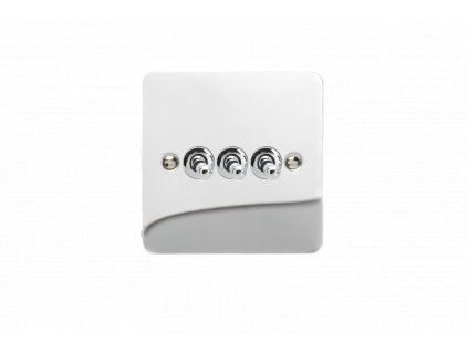 Páèkový vypínaè TOGGLE - 3-modulový schodiový (è.6); jednosmìrný (è.1) 10A 1-pólový BEZROUBKOVÉ - cínová / chromové páèky