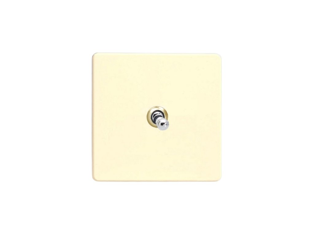 Páčkový vypínač TOGGLE - 1-modulový křížový (č.7) 10A 1-pólový BEZŠROUBKOVÉ - bílá čokoláda / chromová páčka
