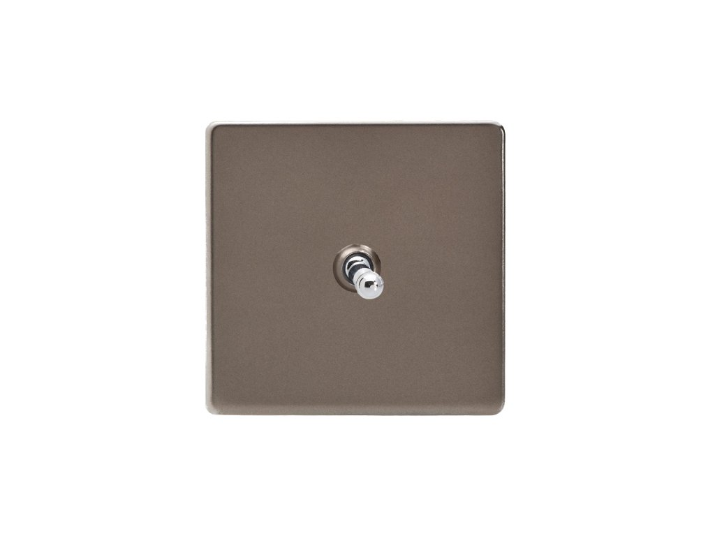 Páčkový vypínač TOGGLE - 1-modulový křížový (č.7) 10A 1-pólový BEZŠROUBKOVÉ - cínová / chromová páčka