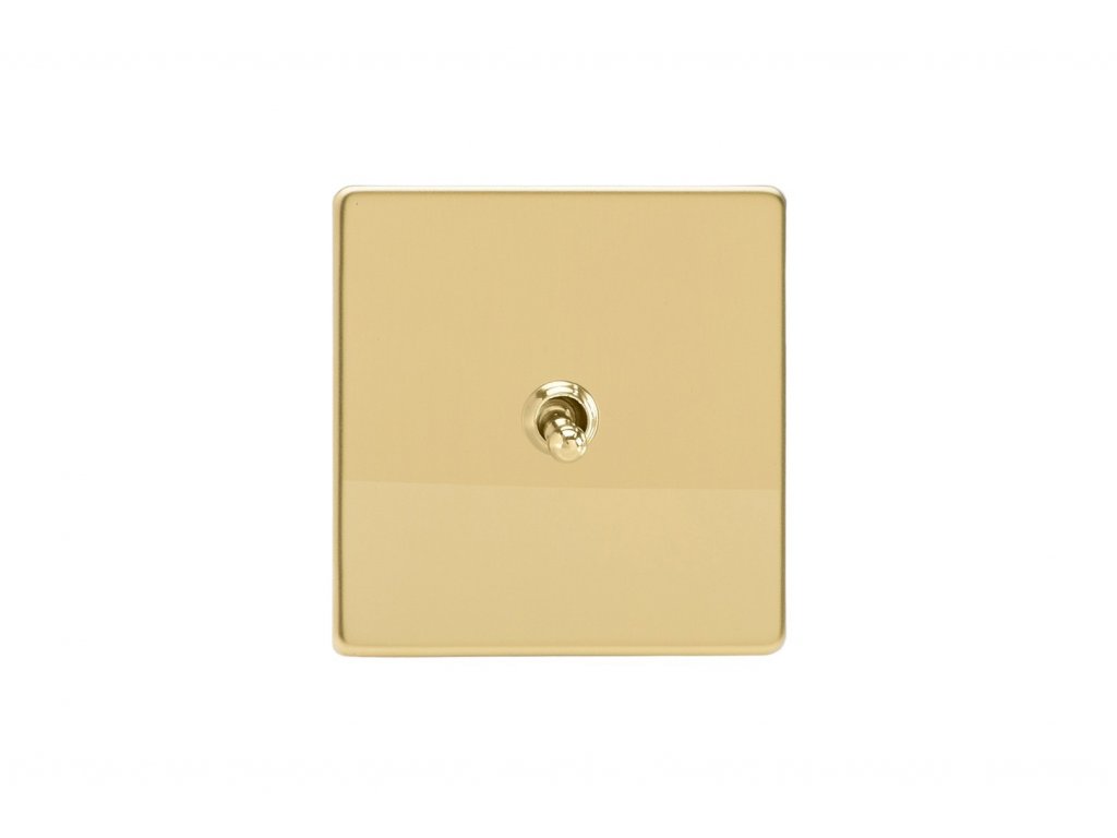 Páčkový vypínač TOGGLE - 1-modulový křížový (č.7) 10A 1-pólový BEZŠROUBKOVÉ - leštěná mosaz / mosazná páčka