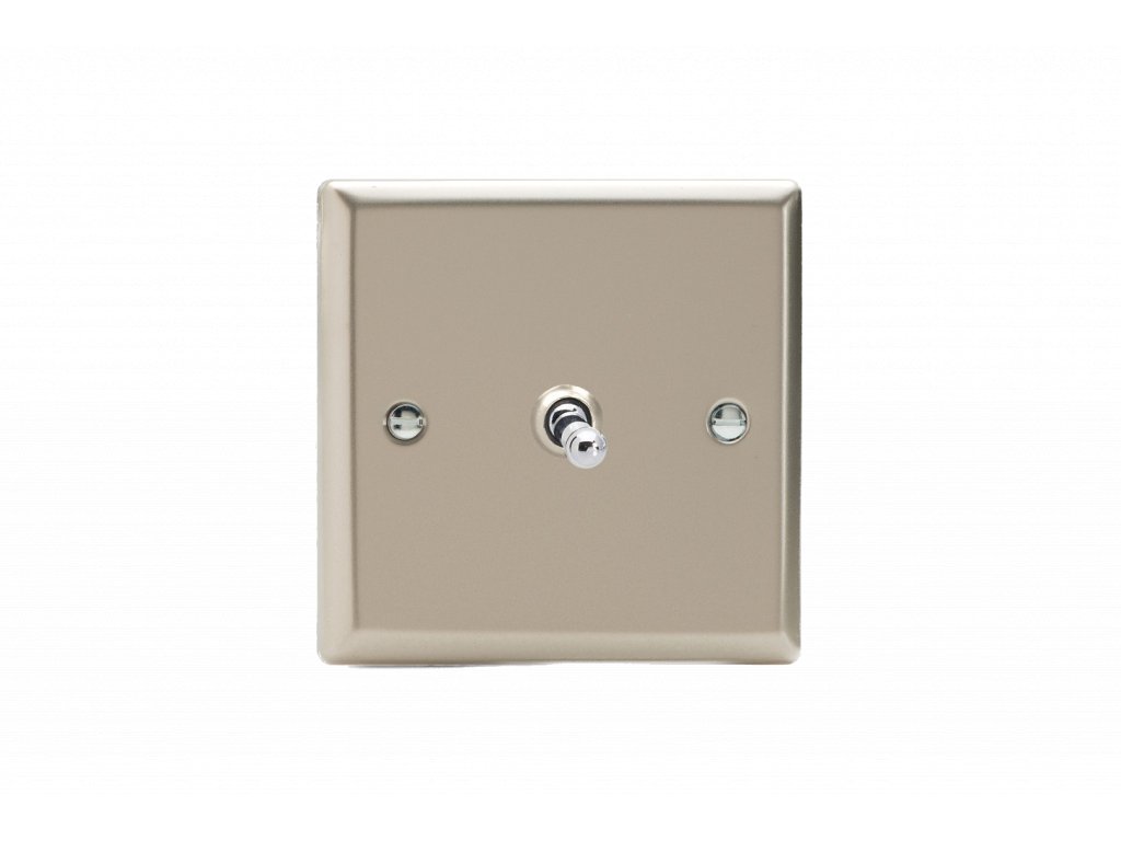 Páčkový vypínač TOGGLE - 1-modulový křížový (č.7) 10A 1-pólový KLASICKÉ - satén / chromová páčka