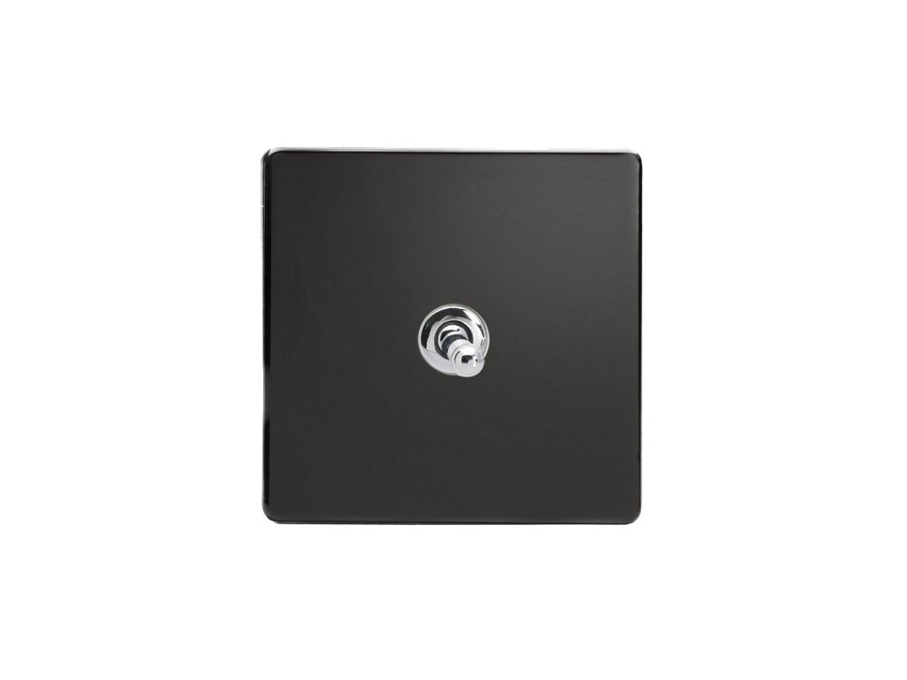 Páèkový vypínaè TOGGLE - 1-modulový schodiový (è.6); jednosmìrný (è.1) 10A 1-pólový BEZROUBKOVÉ - prémiová èerná / chromová páèka