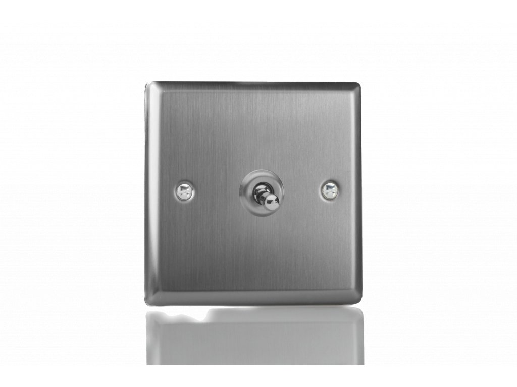 Páčkový vypínač TOGGLE - 1-modulový schodišťový (č.6); jednosměrný (č.1) 10A 1-pólový KLASICKÉ - kartáčovaná ocel / ocelová páčka