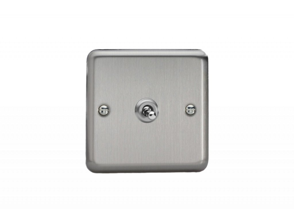 Páčkový vypínač TOGGLE - 1-modulový schodišťový (č.6); jednosměrný (č.1) 10A 1-pólový KLASICKÉ - matně chromová / chromová páčka