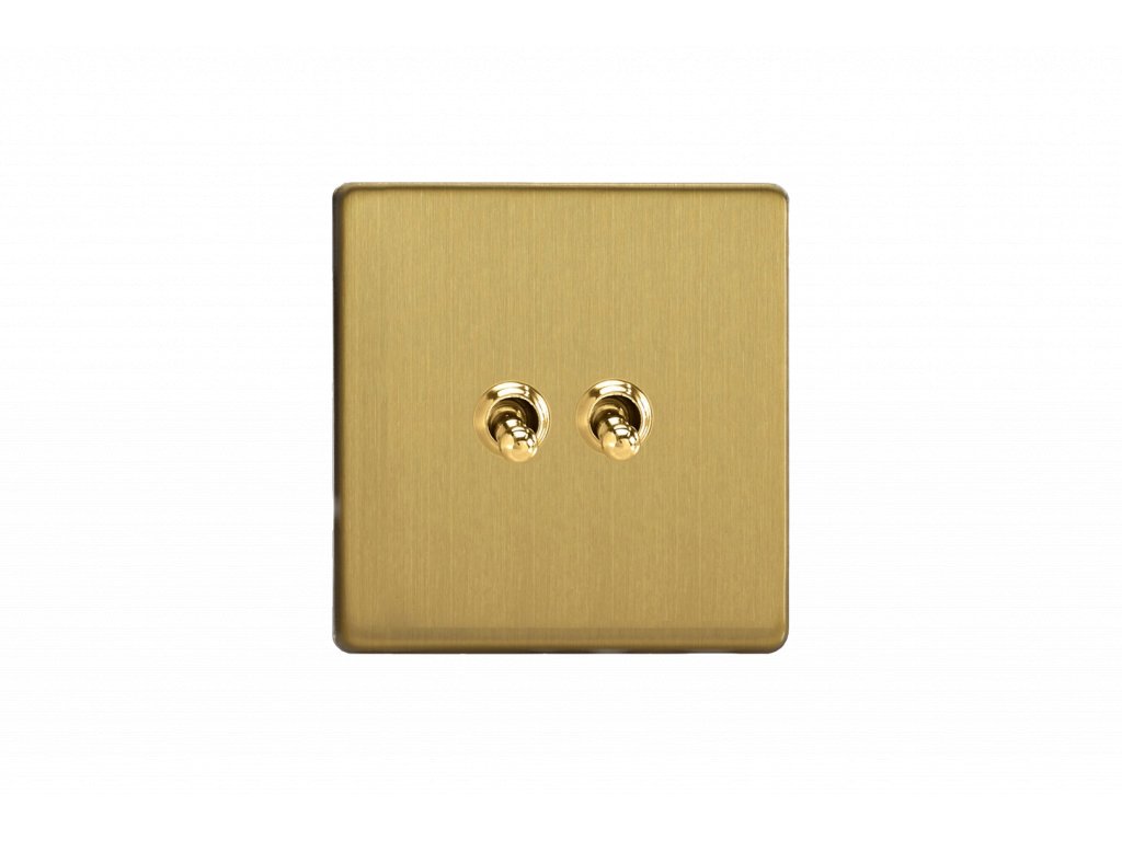 Páčkový vypínač TOGGLE - 2-modulový křížový (č.7) 10A 1-pólový BEZŠROUBKOVÉ - kartáčovaná mosaz / mosazná páčka