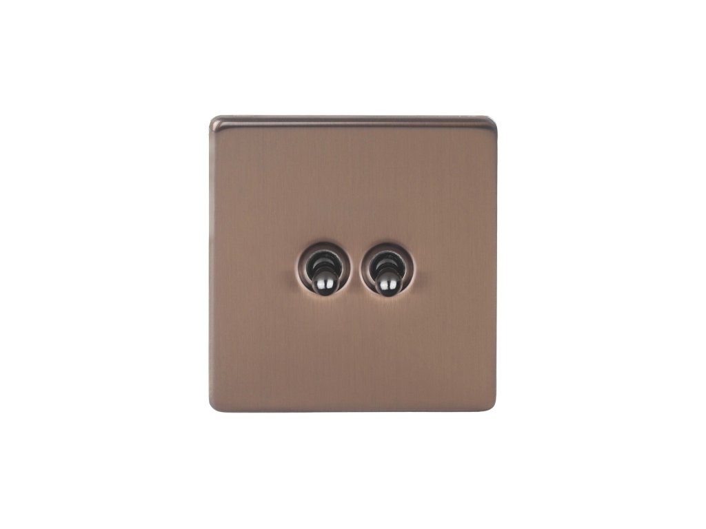 Páčkový vypínač TOGGLE - 2-modulový křížový (č.7) 10A 1-pólový BEZŠROUBKOVÉ - kartáčovaný bronz / černé (lesklé) iridium