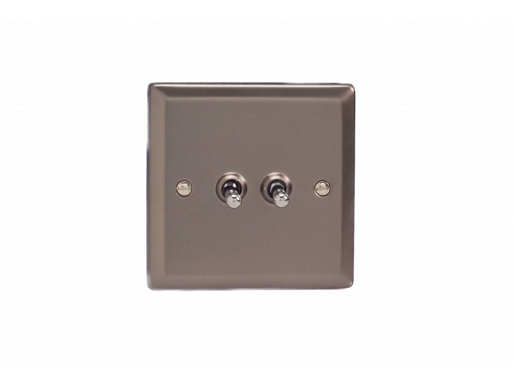 Páčkový vypínač TOGGLE - 2-modulový křížový (č.7) 10A 1-pólový KLASICKÉ - cínová / chromová páčka